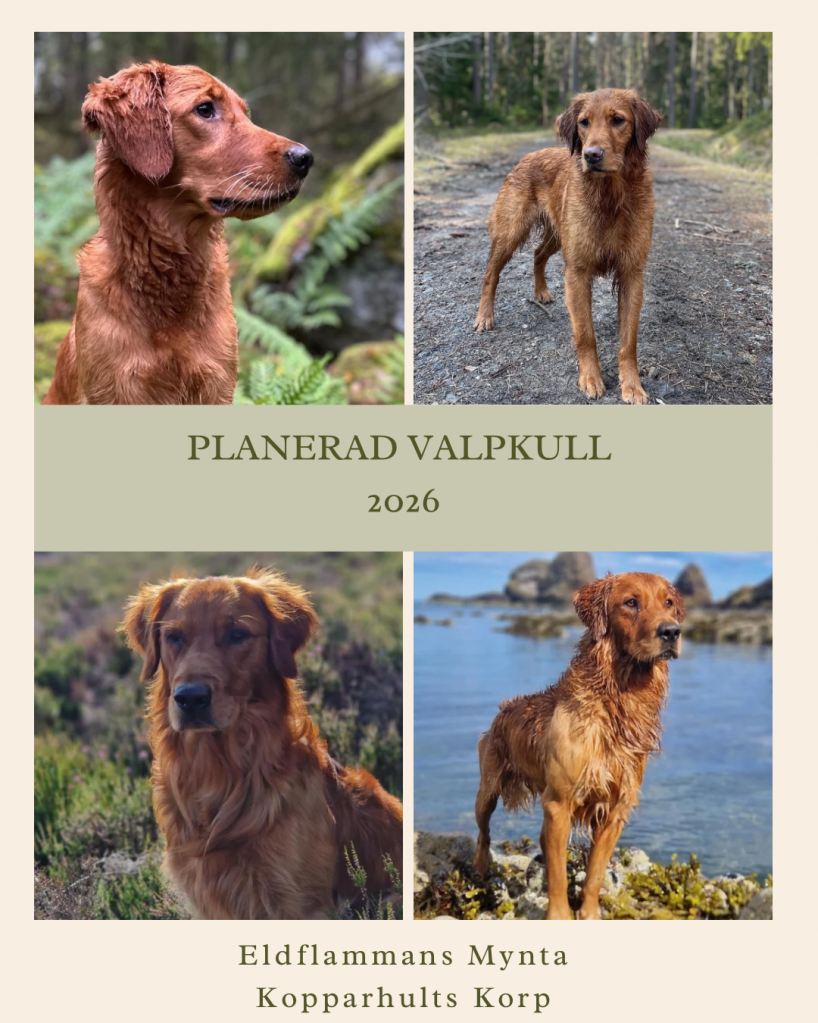 Vi planerar att para Mynta på vårens löp. Om allt går som vi hoppas innebär det sommarvalpar med leverans troligtvis i augusti/september 2026.